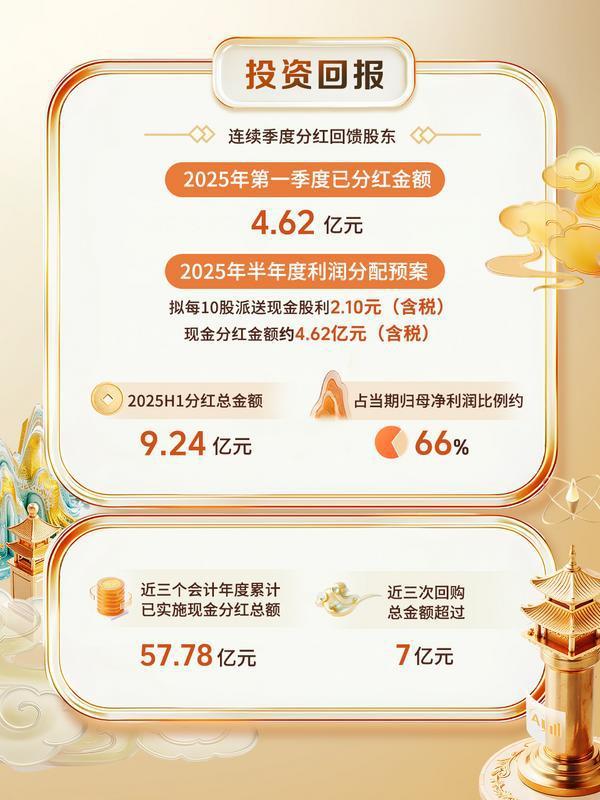 8月25日,三七互娱(002555)发布2025年半年度报告。公告显示,2025年上半年,公司实现营业收入84.86亿元;归属于上市公司股东的净利润为14亿元,同比增长10.72%。同时,三七互娱公布2025年半年度利润分配预案,拟向全体股东每10股派发现金红利2.10元(含税),预计分红总额约4.62亿元。今年上半年,三七互娱预计分红9.24亿元,占当期归母净利润比例达66%。三七互娱正通过现金分红积极回馈投资者,共享经营成果。