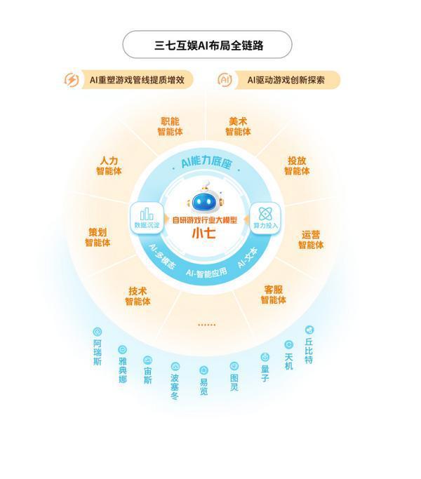 通过持续进行内部训练与推理优化,三七互娱自主研发游戏领域行业大模型“小七”,并基于“小七”及引入行业先进的外部大模型集群,构建40余种AI能力,构建“小七”智能体平台,覆盖市场分析/产品立项/美术设计/开发辅助/广告投放/运营分析/智能客服/通用办公等各业务领域。